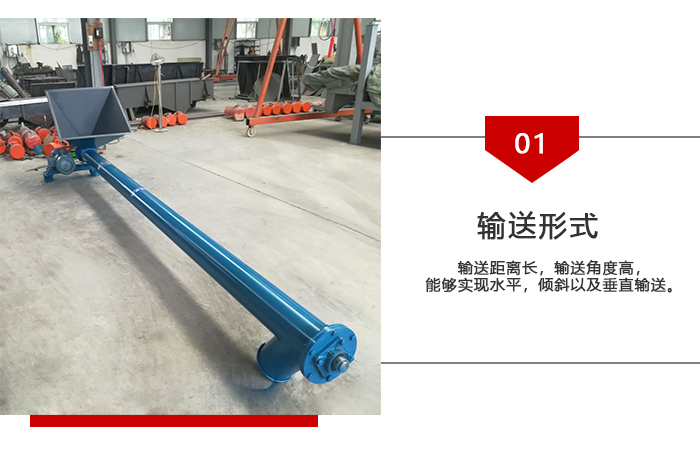 螺旋輸送機輸送距離長,輸送角度高,能夠實現水平,傾斜以及垂直輸送。
