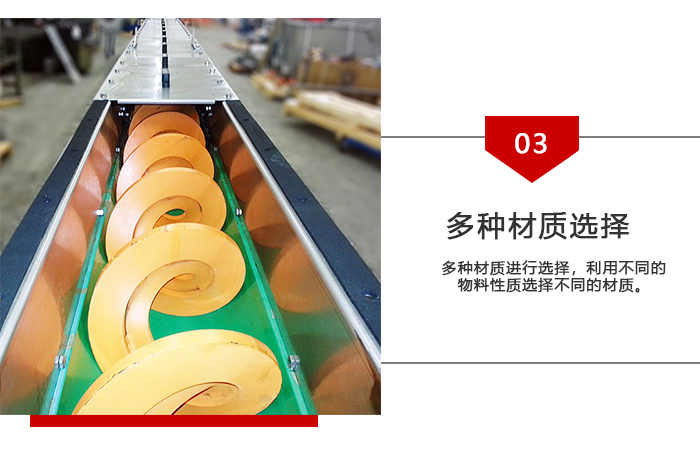 螺旋輸送機多種材質進行選擇,利用不筒的物料性質選擇不同的材質。