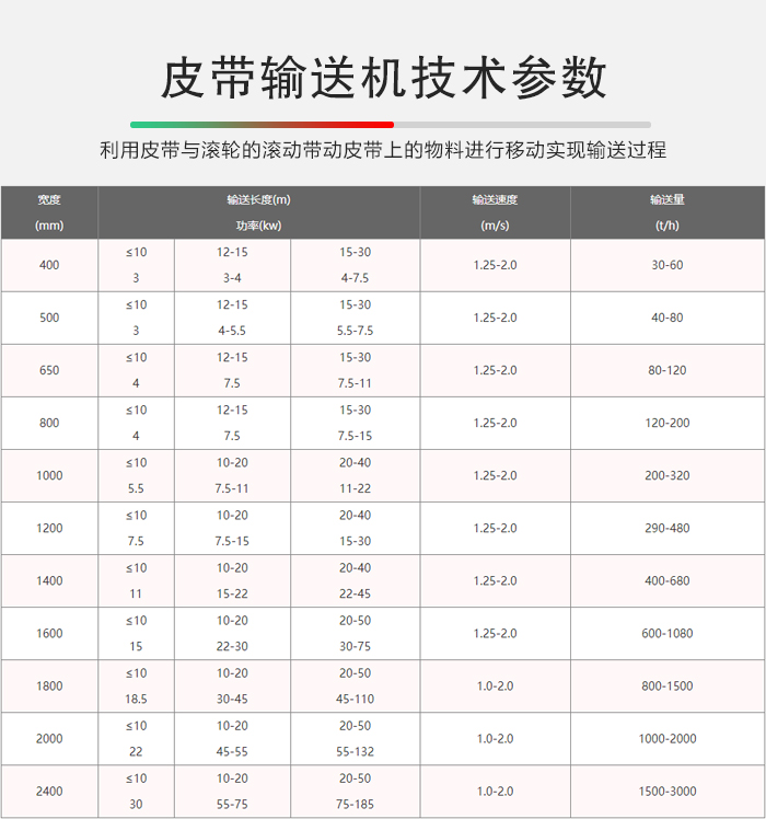 皮帶輸送機技術參數