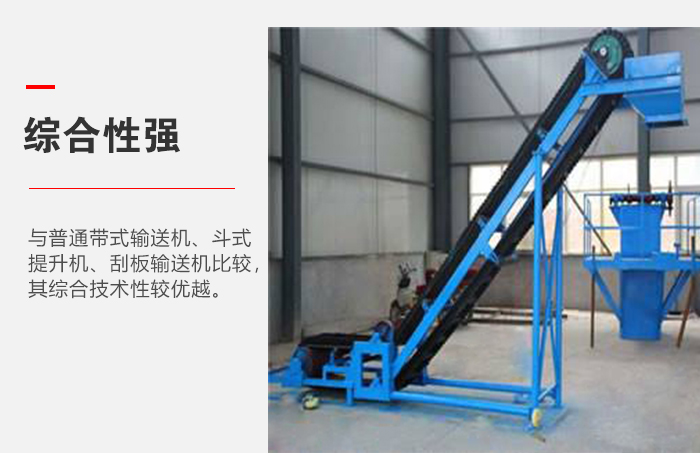 占地面積小,角度不受限制,角度可以做到90度,還有就是輸送速度快,成本低,可以輸送到20米以上的高度,還可以和其它水平輸送機(jī)對(duì)接,達(dá)到長距離的輸送;