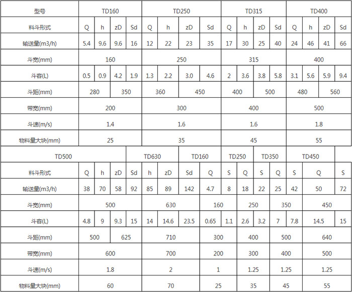 斗式提升機的料斗的容積為i升,實際容積為Ψi升(Ψ為小于1的填充系數),則單位長度的荷量為:q= γψ a——斗距(米) γ——物料容積(噸/米)提升機的輸送能力 Q=qv(千克/秒)或Q=3.6qv(噸/時)由此可得 Q=3.6 γψv(噸/時)由于在實際生產中供料不均勻,所以計算生產率要大于實際生產率N,即N= (噸/時) k---供料不均勻系數,取1.2~1.6取 ψ=0.75 γ=1.2噸/米3 v=1.7米/秒 N=20噸/時 K=1.5 Q=Nk=1.5×20=30噸/時, = = =5.45皮帶斗式提升機使用優勢