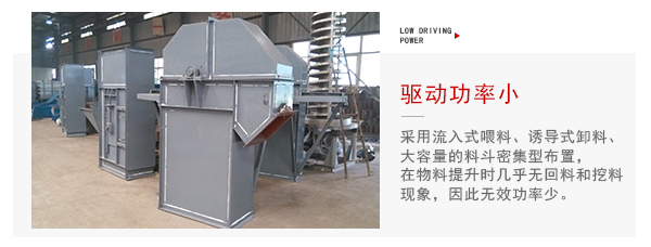 1、驅動功率小采用流入式喂料、誘導式卸料、大容量的料斗密集型布置, 在物料提升時幾乎無回料和挖料現象,因此無效功率少。