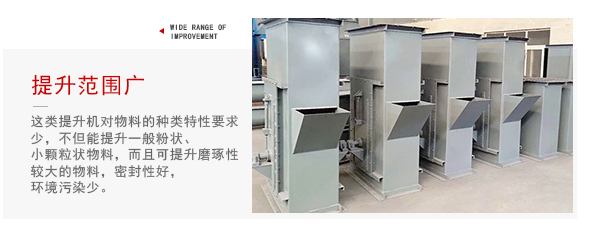 這類提升機對物料的種類特性要求少,不但能提升一般粉狀、 小顆粒狀物料,而且可提升磨琢性較大的物料,密封性好,環境污染少。